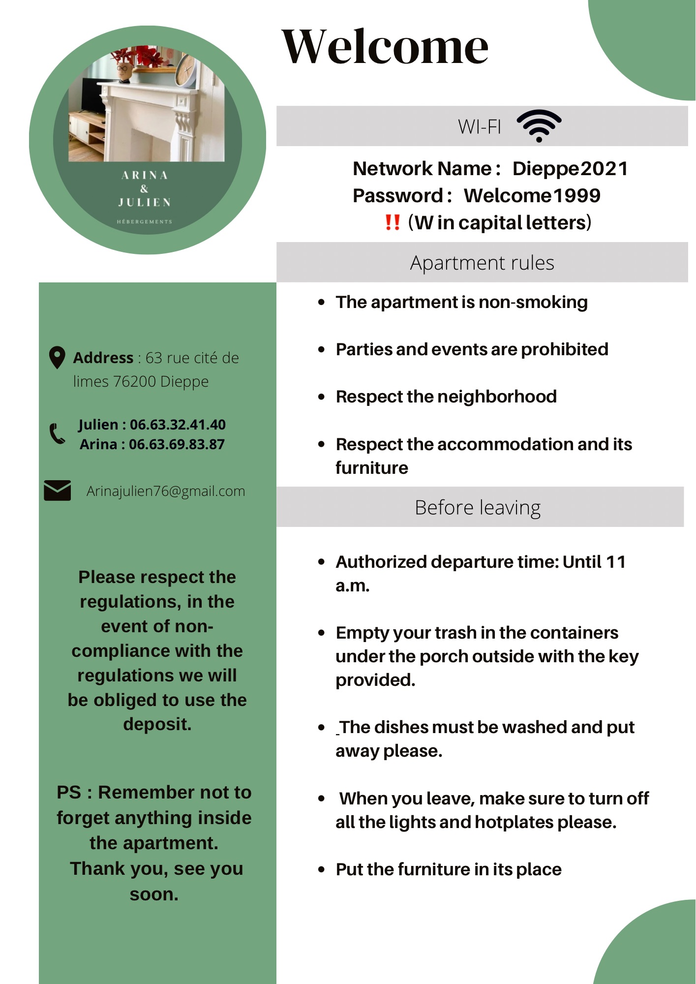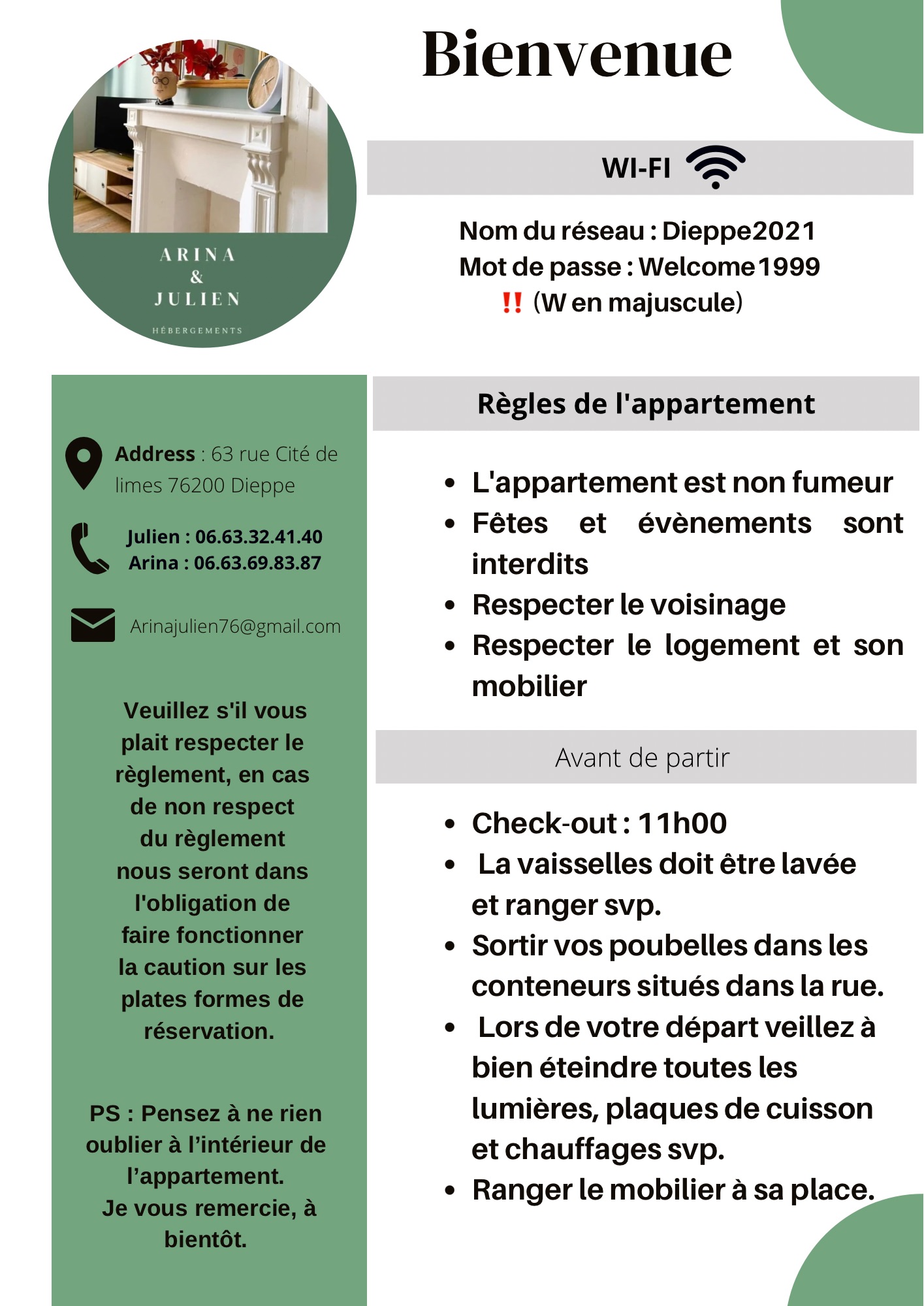 Nous avons mis tout notre cœur dans cette aventure d’hôtes pour vous apporter un hébergement confortable,chaleureux et très propre Nous accordons une place particulière a vos interrogations et essayons d’y répondre très rapidement afin de rendre votre expérience chez nous très accueillante.